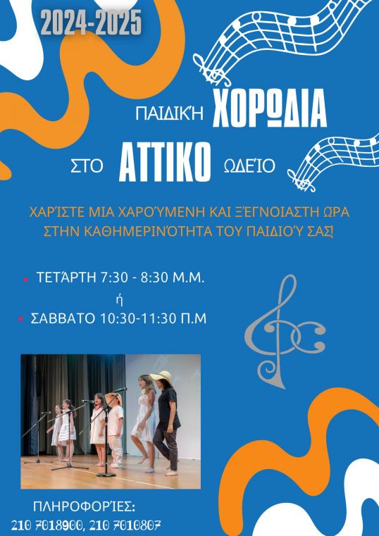 Έναρξη των τμημάτων Παιδικής Χορωδίας κάθε Τετάρτη 7.30-8.30μμ ή Σάββατο 10.30-11.30πμ στο κεντρικό ίδρυμα του Αττικού Ωδείου.