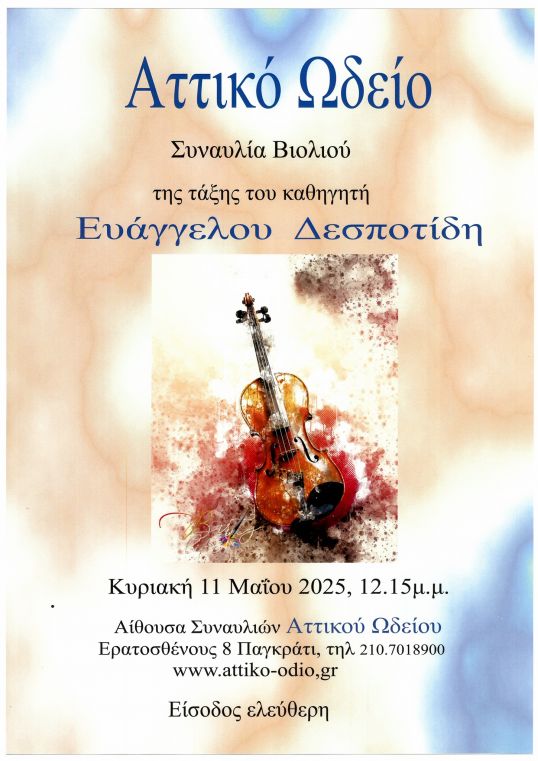 Κυριακή 11 Μαΐου 2025, 12:15μμ: Συναυλία Βιολιού της τάξεως του καθηγητή Ευάγγελου Δεσποτίδη.